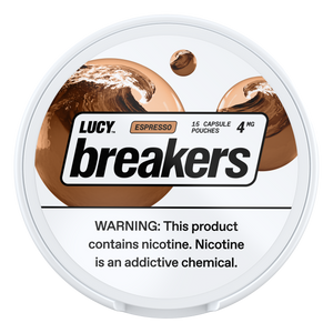 Breakers take everything you love about Lucy pouches - pure nicotine, bold flavor - and level it up. Inside each pouch is a small, crystal-like capsule you can crush whenever you're ready. One press, and you unleash an extra burst of flavor and moisture for a more intense, refreshing experienc.
